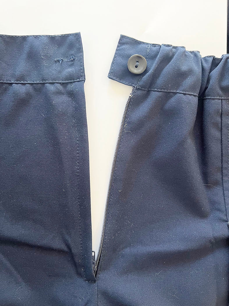 Girls' navy culottes with adjustable elastic waistband and side zip for extra comfort. This item can be worn in both summer and winter as an alternative option on non-sports days.